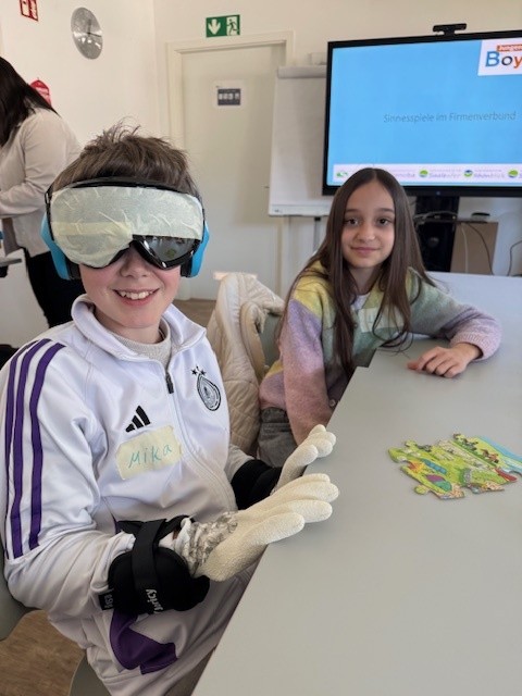 Mit eingeschränkter Sicht durch abgeklebte Skibrillen, Gewichten an den Armen und Hörschutz erlebten sie hautnah, wie sich körperliche und sensorische Einschränkungen anfühlen können.